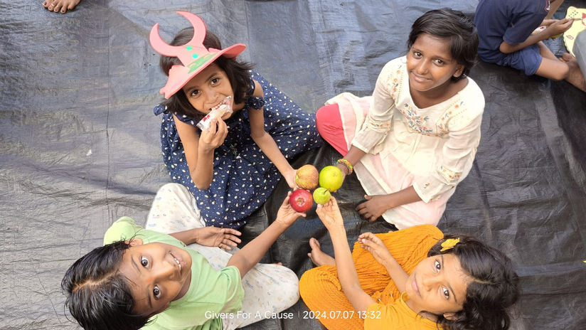Fruits for Kids: At least twice a month, we distribute fresh fruits to children living on the footpath. This initiative helps provide the essential vitamins and minerals children need to stay healthy and strong, contributing to their growth and well-being.